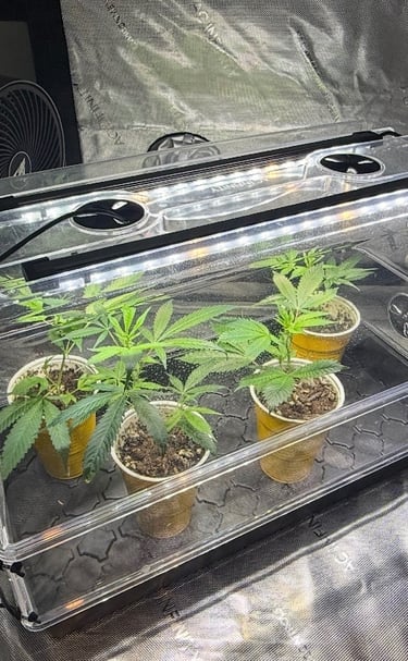 A clone is a little piece of plant that has been cut from a parent plant then given the opportunity to make roots of its own. Cannabis clones are cuttings from a marijuana plant, these cuttings make roots of their own and grow into an identical plant as the "mother!"